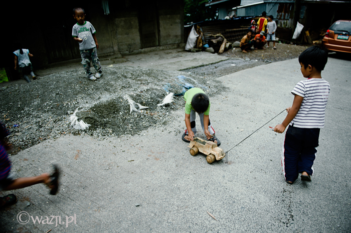 Ostatecznie więc dopiero po południu docieramy do Banaue i ponownie zatrzymujemy się w Green View Lodge, w którym dla odmiany pod koniec czerwca jesteśmy jednymi z nielicznych gości. Dostajemy pokoje bez widoku na ulicę „bo u sąsiadów jest zmarła” i „gromadzą się ludzie, więc wieczorami może być naprawdę głośno” . Wspomnianą imprezę „przedpogrzebową” mamy okazję zobaczyć dopiero następnego dnia – na widok publiczny zostaje wystawiona trumna ze zmarłą, jej sporej wielkości zdjęcie, kolorowe lampki i nieco przywiędłe już kwiaty. Przed trumną siedzi na oko dwadzieścia kilka osób w stanie mniej lub bardziej wskazującym na spożycie wina ryżowego lub innego wysokoprocentowego trunku. Dodatkowo jest gitara, jest śpiew i jest kilka zmęczonych świń czekających najprawdopodobniej na swoją kolej. Ale to wszystko dzieje się później, bo pierwszego wieczora nie bardzo możemy się gdziekolwiek ruszyć. Pada, a właściwie leje, a na dodatek jest ciemno, bo w mieście akurat chwilowo brakuje prądu, więc pozostaje poczekać na lepszy moment.