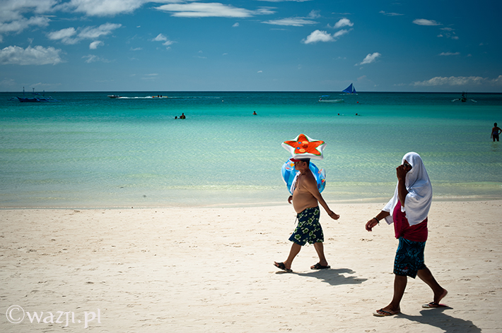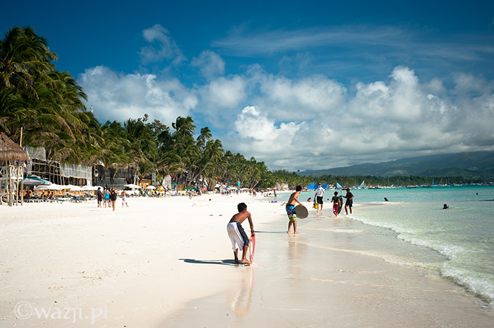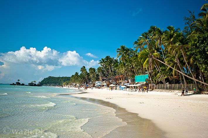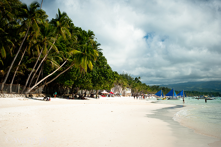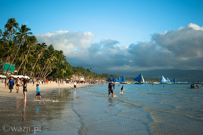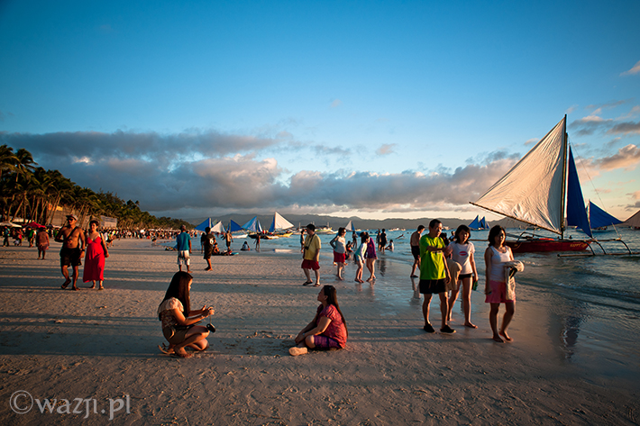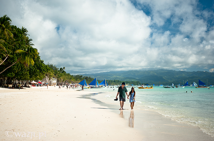 Zamknij oczy. Zrelaksuj się. Wyobraź sobie spokojne turkusowe morze, plaże o nieskazitelnie białym piasku, pokaźnych rozmiarów palmy i łódki leniwie kołyszące się na wodzie. Poczuj promienie przygrzewającego cały dzień słońca. Wyobraź sobie tłumy turystów wylegające późnym popołudniem na plażę. Jeszcze większe tłumy spacerujące wieczorem nadmorską promenadą. Setki najczęściej wielkich hoteli i restauracji wybudowanych nad brzegiem morza. Kakofonię, na którą składają się przemieszane dźwięki dobiegające z kilku restauracji, knajp i imprezowni. To wszystko Boracay, ulubiona wyspa Filipińczyków i wielu obcokrajowców, wielokrotnie zbierająca laury jako „jedna z najładniejszych plaż świata” czy przynajmniej „jedna z najładniejszych plaż Azji”.