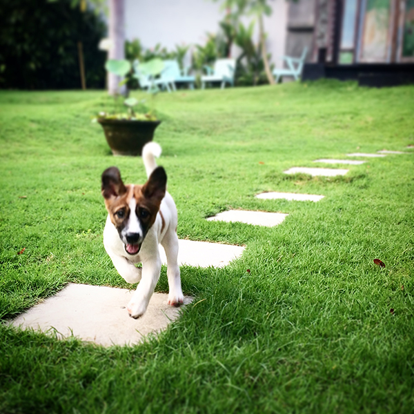 Poznaliśmy się w kolorowej knajpce na plaży, dość znienacka zostaliśmy z impetem wycałowani i skutek tych energicznych psich pocałunków jest taki, że począwszy od niedzielnego wieczoru mamy nowego domownika. Charlie zamieszkał z nami dość nieoczekiwanie, bo choć gdzieś tam w głębi duszy myśleliśmy sobie, żeby mieszkając na Bali, zaopiekować się jednym z tutejszych psów, to zakładaliśmy, że nastąpi to raczej w bliżej nieokreślonej przyszłości. Bardziej tej dalszej, niż bliższej.