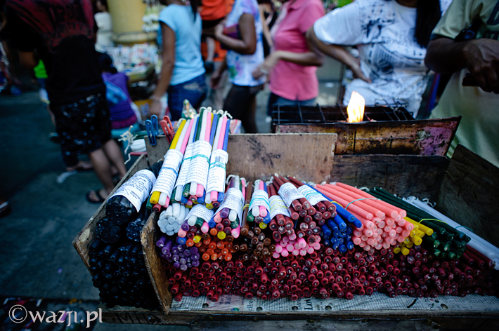Bo kolorowe świeczki też są. Kupujesz i palisz na miejscu wybraną w zależności od potrzeb (białą w intencji niewinności, czerwoną – miłości, niebieską – spokoju, zieloną – powodzenia w finansach, żółtą – dobrego ducha, różową – miłości i zdrowia, brązową – szczęścia, brzoskwiniową – sukcesów w nauce, fioletową – bogactwa materialnego, czarną – sumienia albo różową – dla złożonych intencji).