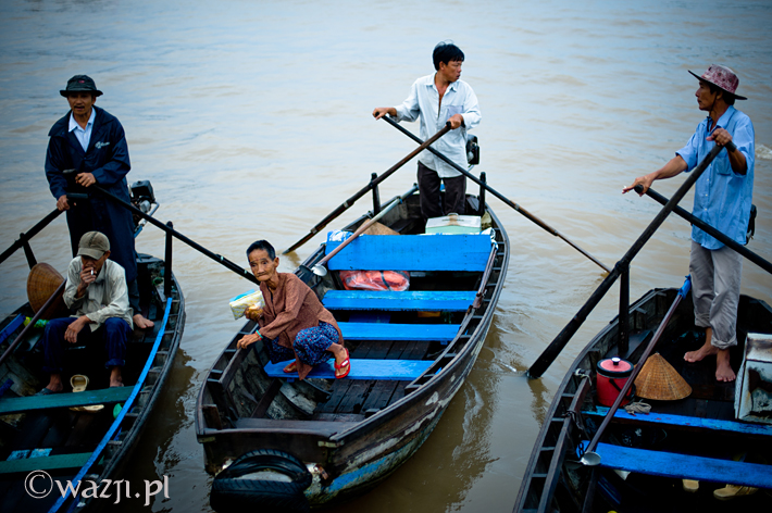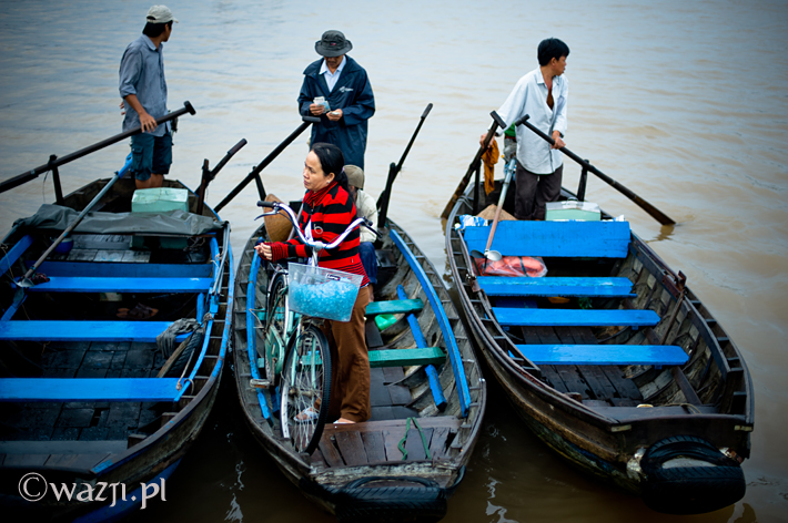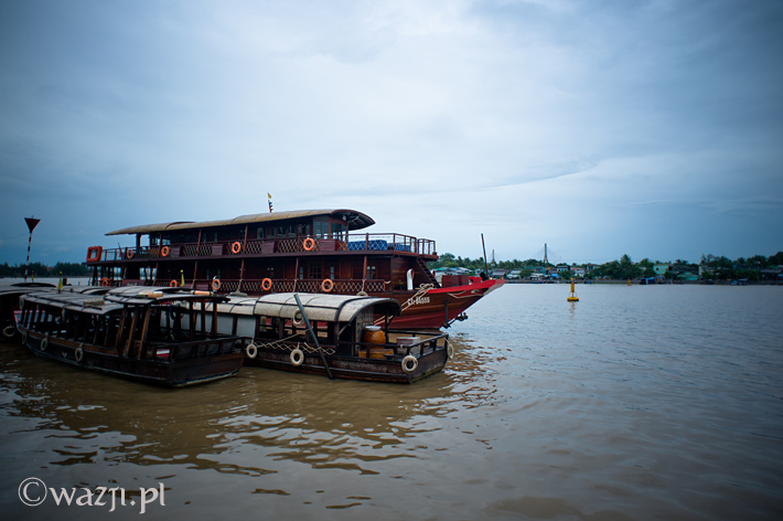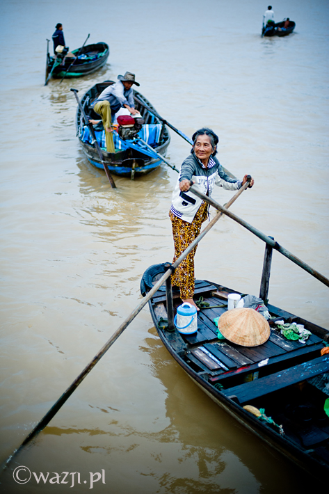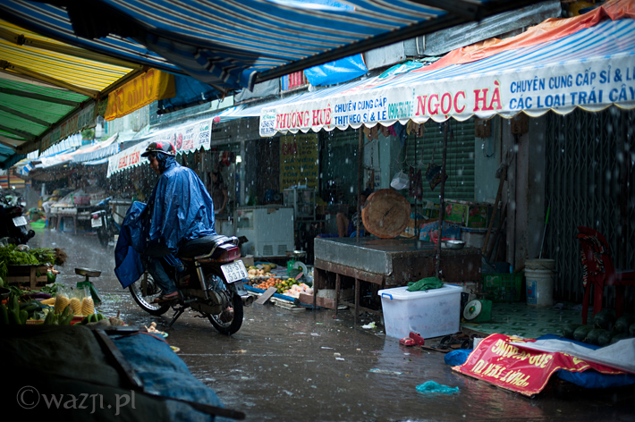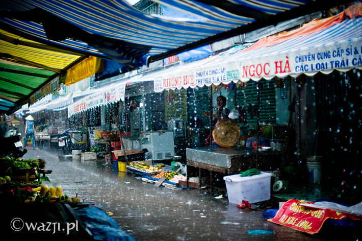 Deszcz padał do późnego popołudnia, a dziś… znowu pada, na szczęście z przerwami. Padało, kiedy na dworcu autobusowym kupowałam chrupiącą bagietkę na drogę. Padało, kiedy luksusowym wietnamskim autobusem w cenie 5 dolarów wyruszyłam z Sajgonu do Cần Thơ, największego miasta Delty Mekongu. Padało, kiedy w autobusowym telewizorze puścili jakiś amerykański film z wietnamskim dubbingiem. Padało, kiedy podziwiałam rzeczne rozlewiska podczas przekraczania kolejnych mostów. Na chwilę przestało padać, kiedy na motorku jechałam do hotelu, ale potem znowu zaczęło. Przestało wieczorem, więc mogłam przejść się po nabrzeżu, zjeść kolację w klimatycznej restauracji nad rzeką i zakupić kolejne pelerynki przeciwdeszczowe. Bo co do tego, że jutro znowu będzie padać, nie mam żadnych wątpliwości. W końcu to wietnamska pora deszczowa.