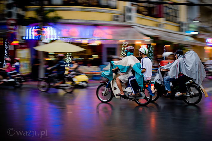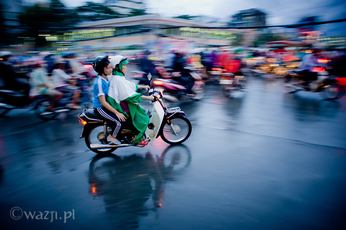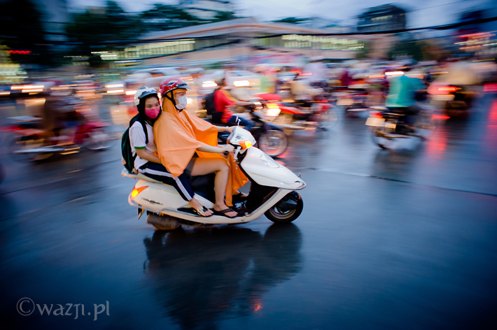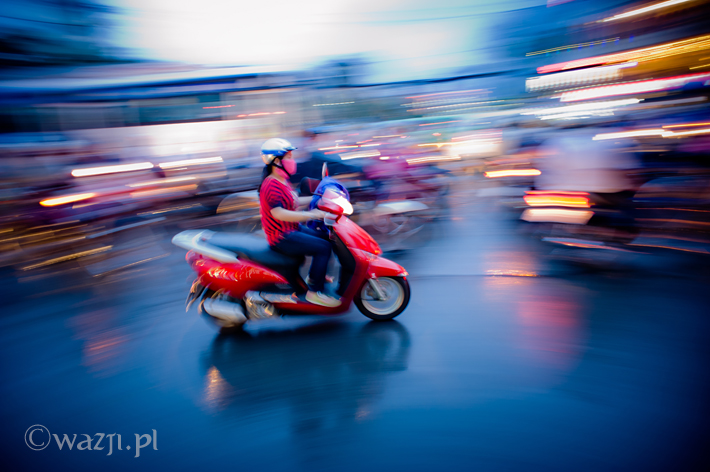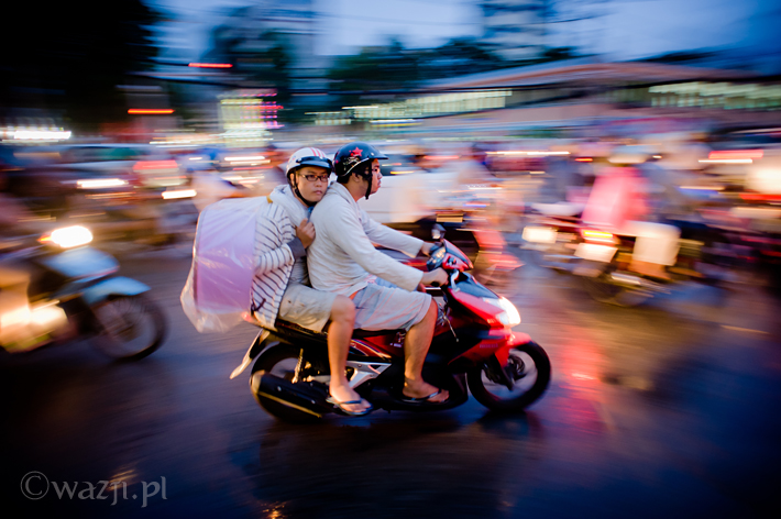 Motorów i skuterów mknących po ulicach Ho Chi Minh City są takie ilości, że trudno to ogarnąć zarówno wzrokiem, jak i rozumem. Kiedy na jednym z nich jedziemy z Wietnamczykiem o imieniu Qui, oczy śmieją mi się do mijanych widoków. Podczas gdy przystajemy na światłach, uśmiechają się do mnie kierowcy innych motorków, a kilkuletnia dziewczynka w kolorowym kasku z Kubusiem Puchatkiem na głowie jedną ręką trzyma się pleców taty, a drugą macha na przywitanie. Mijamy kolejne ulice, skręcamy, wyprzedzamy, wymijamy i trąbimy! Tyle emocji w tej jeździe! Zastanawiam się, czy kiedykolwiek byłabym w stanie odważyć się i wyruszyć na ulice Ho Chi Minh City samodzielnie… Na razie jedyne, na co mnie stać, to bezbolesne przechodzenie na drugą stronę drogi pośród pędzących motorów, co przyznaję, uwielbiam i uskuteczniam tak często, jak jest okazja, bo chyba po prostu lubię towarzyszący temu dreszczyk emocji.