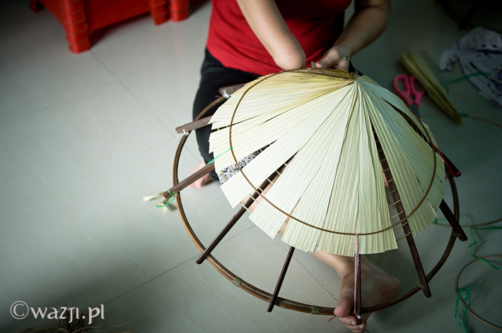 Stożkowy kapelusz (po wietnamsku „non „) to jedna z tych spraw (zaraz obok zupy phở), która zwykle przychodzi do głowy na hasło „Wietnam „. Zakładany przez wielu Wietnamczyków tradycyjnie ma na celu ochronę: zarówno przed słońcem w upalne dni, jak i przed deszczem podczas niepogody. Noszą je więc pracujący w polu rolnicy, rybacy podczas połowu, sprzedawcy owoców z wielkich koszy, tancerze na scenie i wielu wielu innych ludzi, a same kapelusze bez problemu kupić można na prawie każdym z lokalnych targowisk.