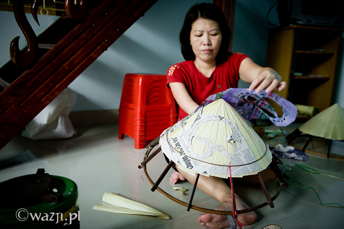 W telewizji nie widziałam, ale bardzo chciałam zobaczyć warsztat Thuy, więc pojechaliśmy i błądząc co nieco po wąskich zaledwie na szerokość ramion uliczkach, w końcu trafiliśmy do jej domu. Ta przywitała nas ciepło i zaprosiła do środka.