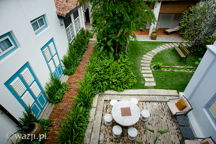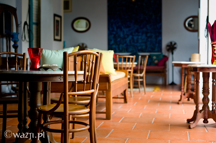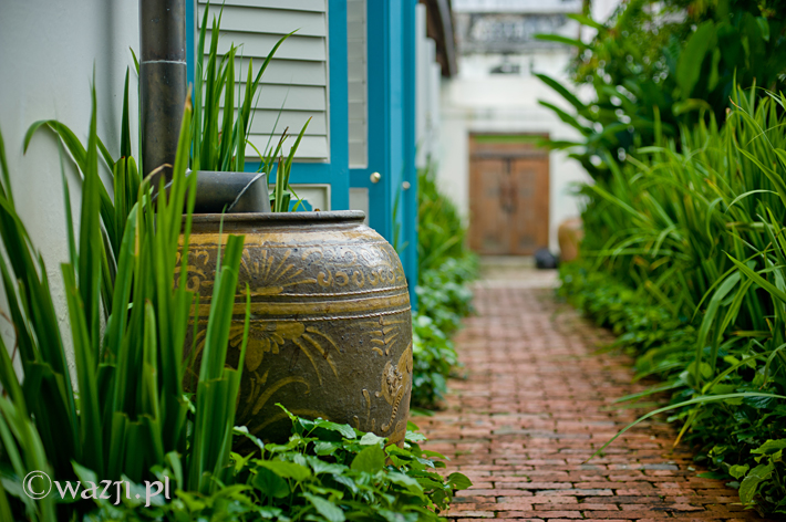 Nowy miejsce znaleźliśmy zupełnie przez przypadek. Kiedy maszerowaliśmy Love Lane, popularną wśród turystów uliczką w Georgetown, nieco już zrezygnowani, bo okazało się, że o pokój w okolicy niełatwo, wypatrzyliśmy dwójkę osób wychodzących z bramy, którą początkowo, z powodu wiszących lampionów wzięliśmy za wejście do małej świątyni, ewentualnie niewielkiego muzeum, a okazało się być pięknie odrestaurowanym kolonialnym domem z początku XIX wieku.