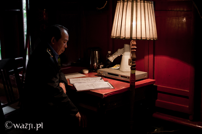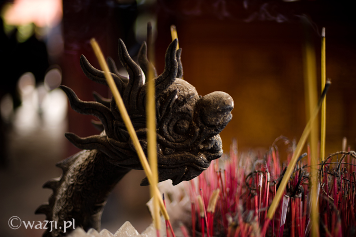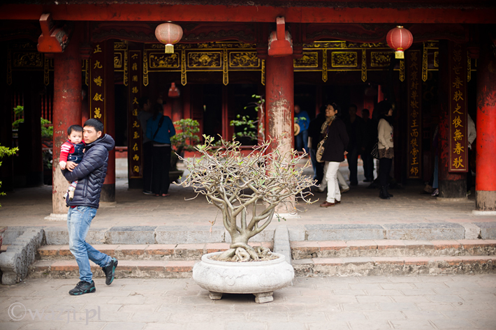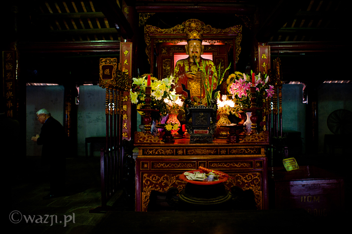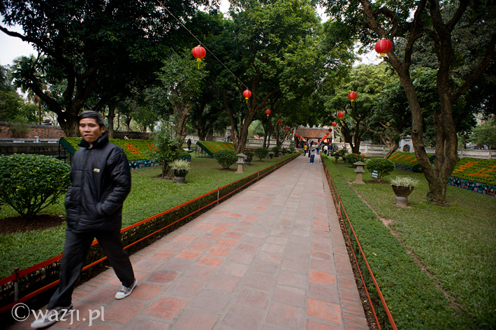 W świątyni otoczonej wysokimi ceglanymi murami zawsze panuje spokój, o który tak trudno w pełnym zgiełku Hanoi.