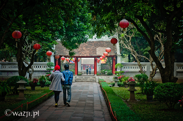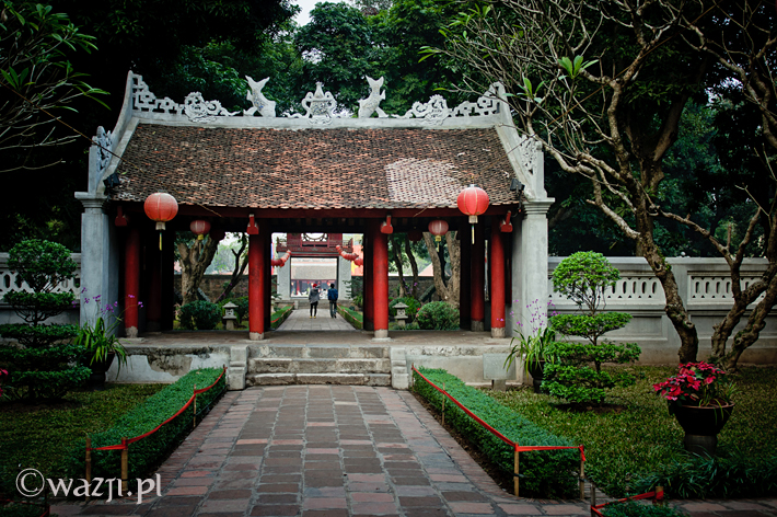 Stara konfucjańska świątynia jest dzisiaj uważana za jeden z najważniejszych i zarazem najwspanialszych zabytków w Hanoi. Nic dziwnego, w końcu to prawdziwa architektoniczna piękność, wzorowana na świątyni znajdującej się w mieście narodzin Konfucjusza – Qufu. Składa się z pięciu dziedzińców połączonych za pomocą szerokich ścieżek. W dawnych czasach główna ścieżka zarezerwowana była dla króla, a dwie boczne dla jego administracji i wojskowych. Pierwsze dwa dziedzińce przypominają bardziej parki tonące w bujnej zieleni. Na trzeci, zwany Ogrodem Nagrobków wchodzi się przez stary pawilon. Czwarty z kolei, zwany Dziedzińcem Sanktuarium Mądrości, to miejsce, w którym usytuowana jest świątynia, a w niej statua Konfucjusza. Zupełnie na końcu, na piątym dziedzińcu mieścił się wspomniany uniwersytet.