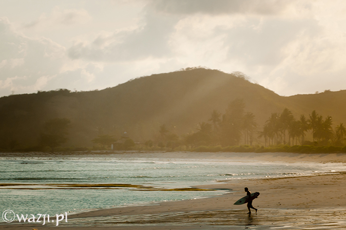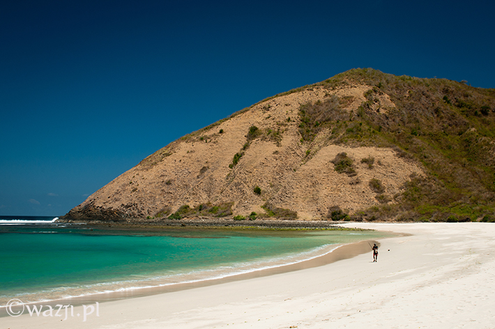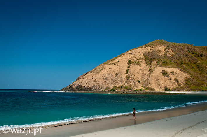 6. Jedynym Twoim dylematem może być: „To na jaką plażę się dzisiaj wybrać?”. W przypadku południa Lomboku będzisz zastanawiał się przynajmniej nad jedną z trzech opcji: plażą w Kucie (blisko, plaża przyzwoita, ale relatywnie dużo ludzi), w Tanjuung Aan (nico dalej, ale za to zdecydowanie mniej ludzi oraz księżycowe widoki z powodzeniem rekompensujące odległość, którą musisz pokonać) albo nad Mawun Beach ( fatalna droga, a właściwie częściowy jej brak i co za tym idzie: prawie zupełny brak ludzi i jakiejkolwiek infrastruktury, ale to bez wątpienia mój numer jeden w osobistym rankingu plaż, na jakich kiedykolwiek miałam okazję być).