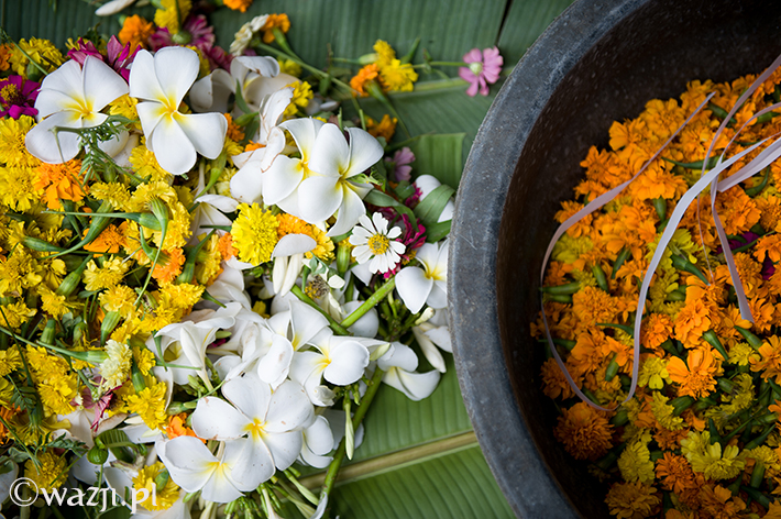 – Do przygotowania tukarola potrzeba dużo liści. Musi ich wystarczyć do tego, żeby zakryć cały bambusowy stelaż. – tłumaczy Mandy. – Kiedy już liście są odpowiednio umocowane, należy je przyciąć w kształt stożka. A potem ozdabia się wszystko kwiatami wedle własnych upodobań.