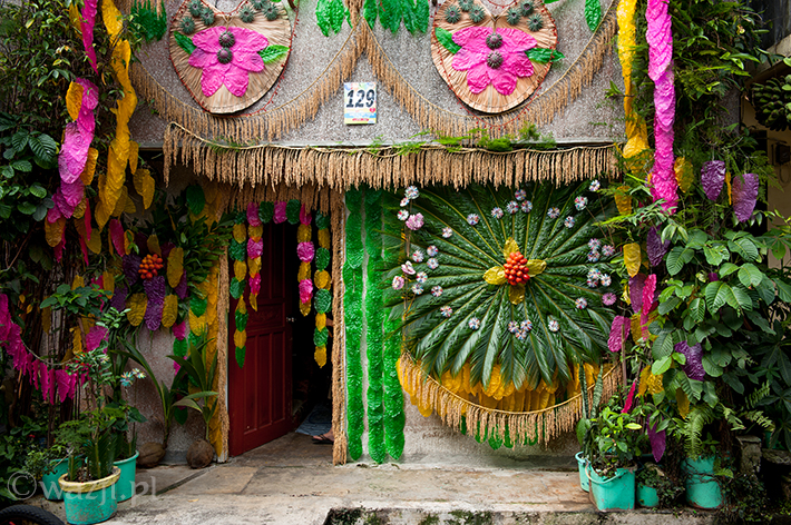 Festiwal Pahiyas to coś w rodzaju naszych dożynek, podczas których mieszkańcy Lucban dziękują za plony. Cała fiesta odbywa się ku czci San Isidro Labradora, patrona rolników, ale tym, co wyróżnia Pahiyas spośród dziesiątek (a może setek?) filipińskich festiwali, są przystrojone fasady budynków. Mieszkańcy Lucban puszczają wodze wyobraźni i dekorują swoje domy w sposób najprzedziwniejszy używając do tego celu warzyw, owoców i kiping, czyli kolorowych elementów dekoracyjnych z ryżu.