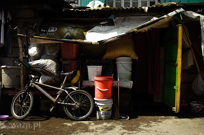Jovie poznałam w lipcu. Mieszkała w Caloocan, w domu skleconym z byle czego – kawałków drewna, kilku blach, jakiejś szmaty, beczek i jednej ściany z cegieł. W środku duże łóżko, plastikowe półki i mały ołtarzyk ze świętym obrazkiem. Przed domem mały rower. Miała sporo szczęścia, bo ta ich jedyna ceglana ściana to ściana domu zamożniejszego sąsiada. Takiego, u którego i czasem dorobić było można, szczególnie, kiedy przyjedżała ciocia z Kanady (100 peso za dzień pracy plus wyżywienie) albo tak zwyczajnie, po ludzku – dostać trochę ryżu albo jakieś resztki z obiadu. Dało się wyżyć.