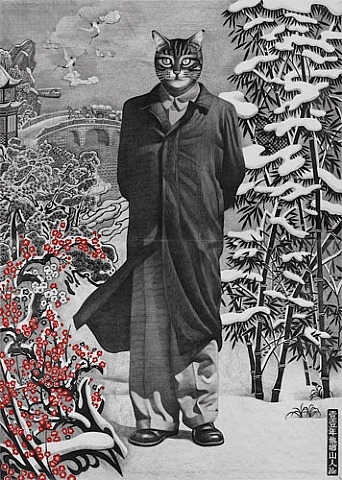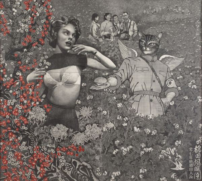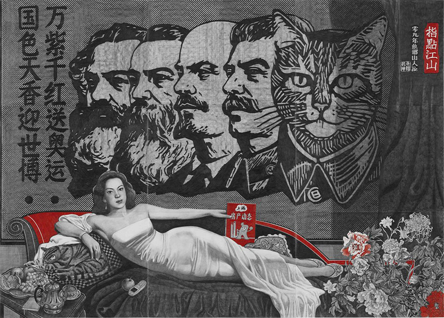 Zainspirowane filozofią wschodu prace Qiu Jie czerpią również z kiczu artystów Zachodu i przedstawiają najczęściej mniej i bardziej surrealistyczne wizje z kotem w roli głównej. Ale nie jest to zwykły kot, bo kot w języku chińskim to… MAO.