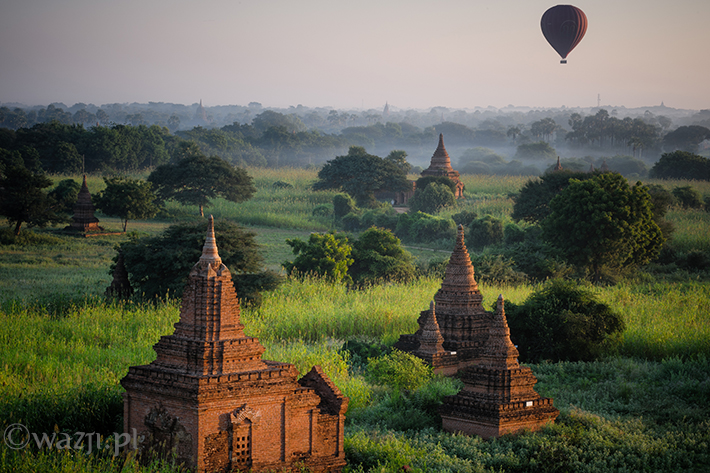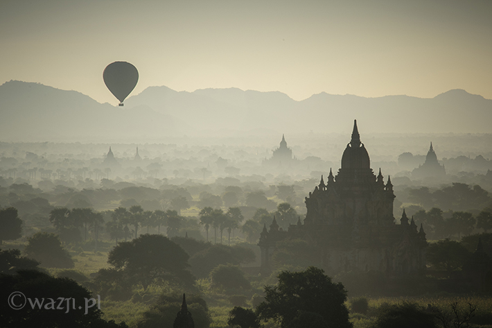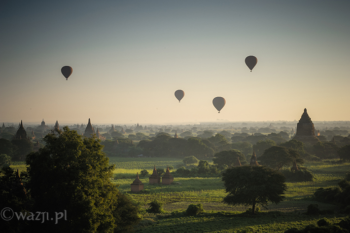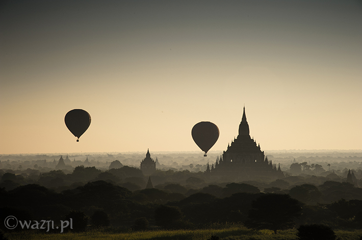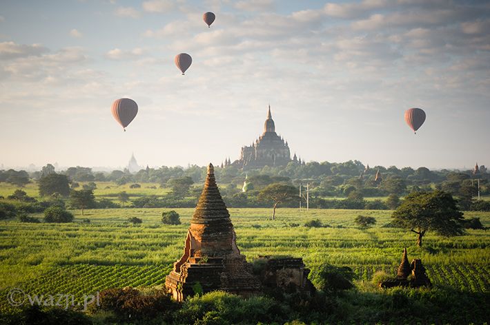 – Balony! – wola mnie nagle Kasia i widzę, jak w powietrze unoszą się kolejne kosze pełne szczęśliwców mających okazję podziwiać świątynie Baganu z powietrza. Wtedy jeszcze nie wiem, że nasz planowany lot nad Mandalay dojdzie do skutku, więc patrząc na nie szczerze zazdroszczę tym wszystkim, którzy są wówczas w górze. Taki widok z pewnością rekompensuje mi wszelkie mankamenty porannego wstawania.