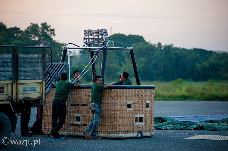 Przed wschodem słońca przyjeżdża samochód z firmy Oriental Ballooning. Po wschodzie słońca czekam już na płycie starego lotniska w Mandalay i podczas gdy piloci wraz z obsługą techniczną przygotowują balony do startu, ja wraz z innymi pasażerami kosztuję kawy, herbaty i różnych śniadaniowych słodkości. Nie wierzę, że to dzieje się naprawdę.
