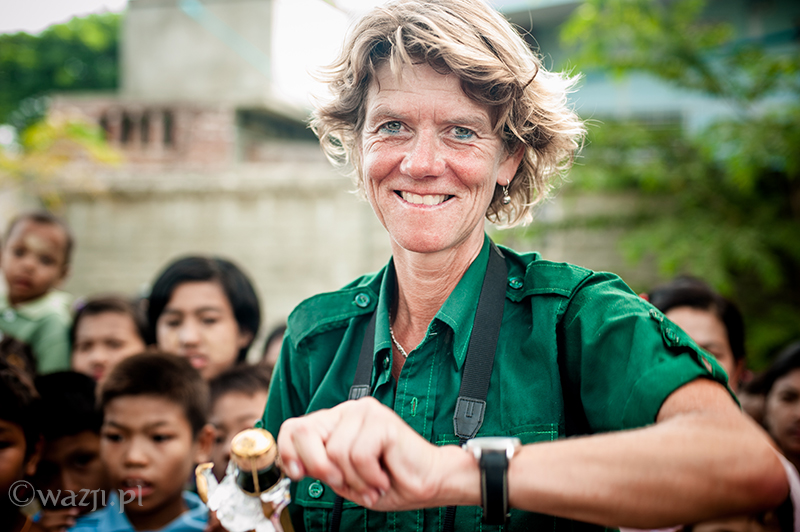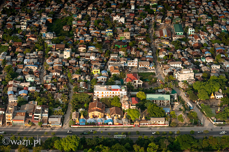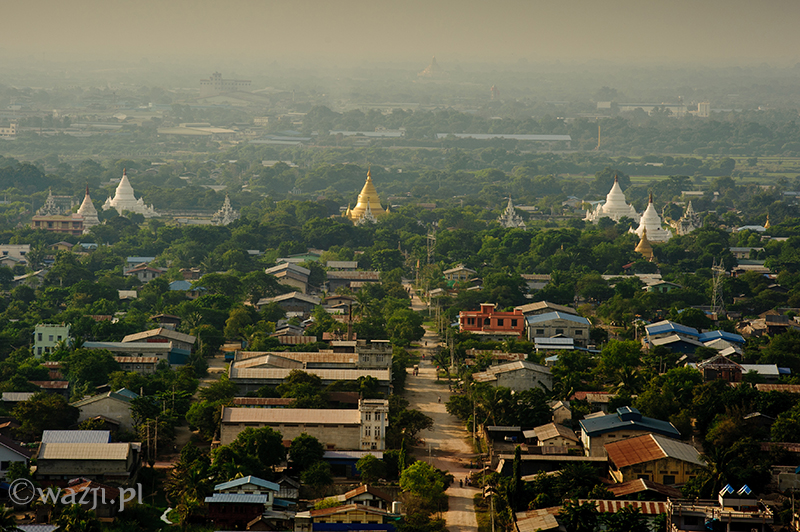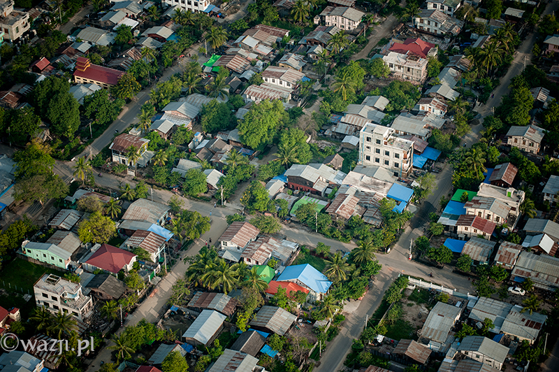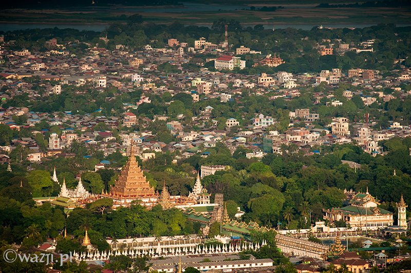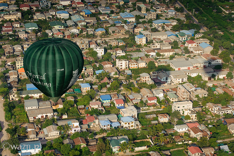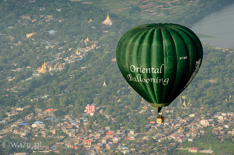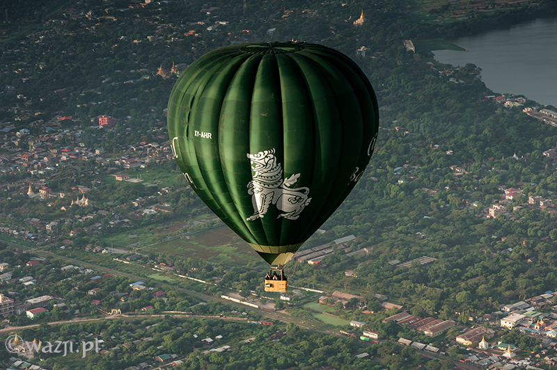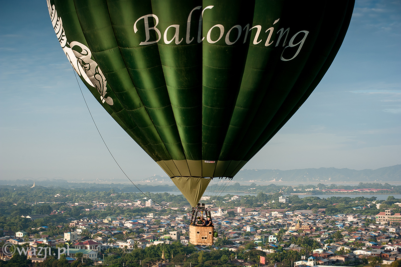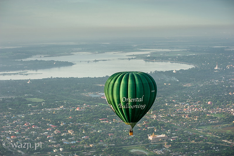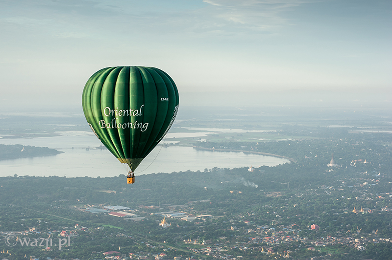 Wszystko odbywa się tak sprawnie i zarazem delikatnie, że zamiast tak, jak przewidywałam – bać się, zaczynam cieszyć się każdą pojedynczą chwilą lotu. Momentem, kiedy Allie pokazuje nam miejsca w Mandalay („zobaczcie tam po prawej jest pałac, a tu bliżej niedokończony stadion budowany na birmańskie Sea Games” ), panoramą miasta o poranku, błyszczącą w słońcu rzeką Irrawaddy, dostrzeżoną w końcu świątynią w Mingun, świątynkami z Sagaing wyglądającymi z daleka jeszcze bardziej nierealnie, domkami w Mandalay przypominającymi kolorowe klocki i twarzami ludzi, na których twarzach widnieje uśmiech przemieszany z niedowierzaniem. Jest wspaniale. I choć być może w Baganie byłoby jeszcze piękniej (tym bardziej, że widoczność w Mandalay jest krótko mówiąc średnia), to i tak nie przestaję się zachwycać. „Mogłabym tak bez końca” , myślę sobie. I nie jestem w tym odosobniona, bo za chwilę słyszę, jak Allie mówi z rozmarzeniem „Latanie nad Mandalay jest tak nieprawdopodobne! Za każdym razem odkrywam jakieś nowe fantastyczne miejsca i kolejne świątynki widoczne dopiero z góry” .