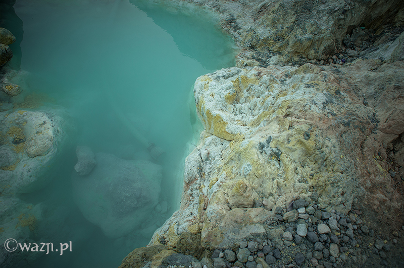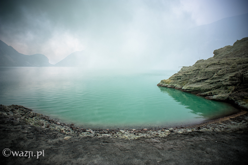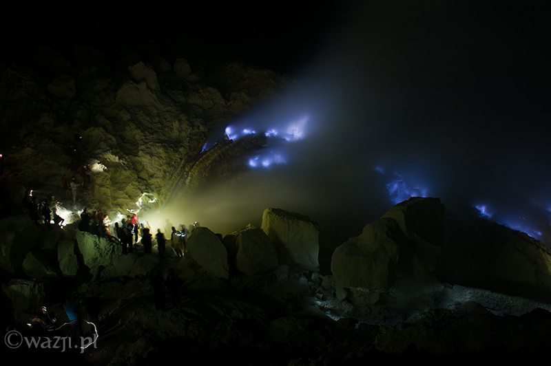 Zmęczeni, diabelsko cuchnący siarką i z latarkami na głowach chcemy na własne oczy ujrzeć (czyt: sfotografować) słynny niebieski ogień powstały w wyniku zapaleń gazu siarkowego. Mam wrażenie, czy wręcz pewność, że szczęście w ogóle nam nie dopisało. Ogień jedynie nieśmiało przenika przez gęste opary siarkowego dymu. Wstaliśmy na próżno, a do wschodu słońca pewnie długie dwie godziny.
