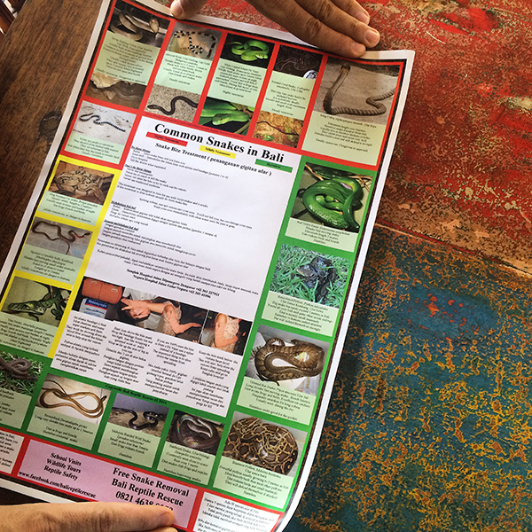 Bo węże na Bali były, są i będą. Żyjąc na polach ryżowych, rzekach i drzewach; szukając schronienia w suchych domach; przypadkiem znajdując się w ogrodach; przekraczając ruchliwe ulice. Ostatnio znajoma spokojnie kończyła gotować obiad z pełną świadomością, że obok, pod lodówką, siedzi wąż, więc można się do nich przyzwyczaić. Pogotowie wężowe (Bali Reptile Rescue 24H, +62 821 4638 0270) działa sprawnie, a wręcz imponująco, więc nie ma się też czego bać. No i znakomita większość tych balijskich gadów jest zupełnie niegroźna.