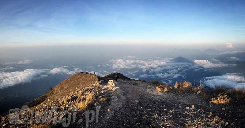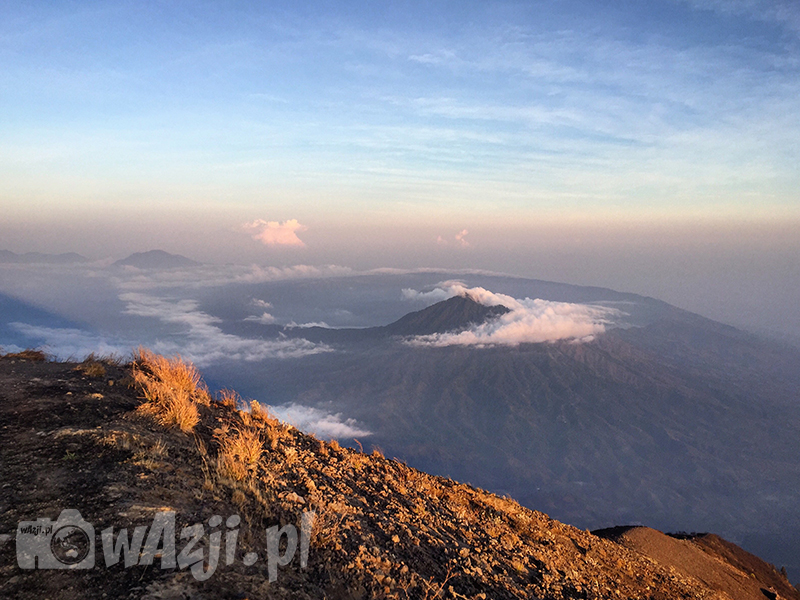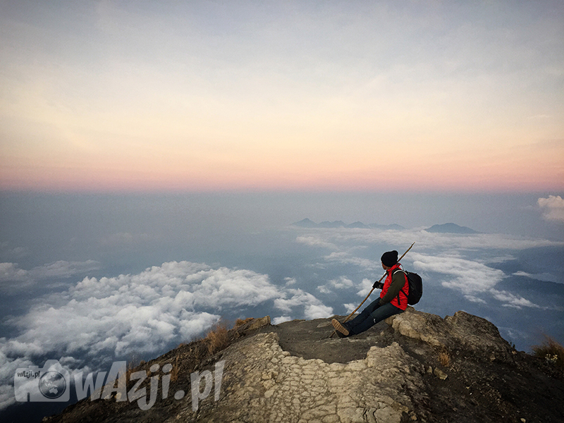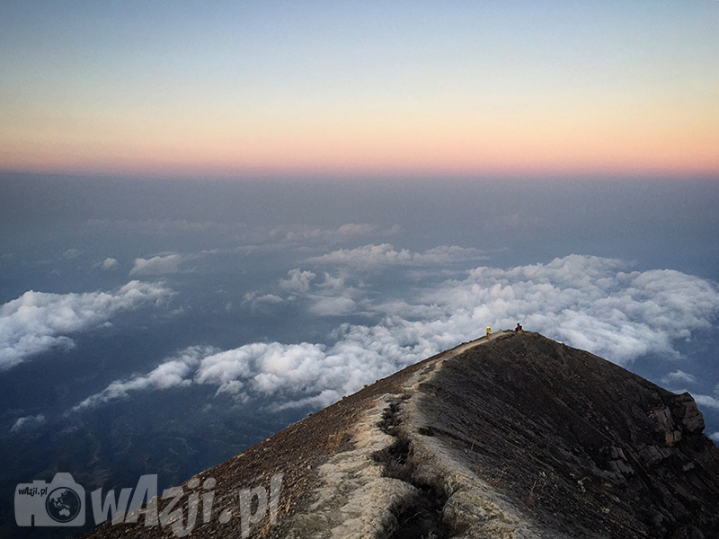 Na szczyt Agunga prowadziła drabina. Długa, niemalże zupełnie pionowa. Taka, której końca nie było widać. Z wejścia zrezygnowałam, bo nie dość, że drabin nie lubię, to jeszcze zgubiłam aparat i straciłam nadzieję na dobre zdjęcia. Krzych poszedł sam, a ja zostałam z mężczyzną z dziećmi, aby podziwiać wschód słońca nad Bali z punktu widokowego. I żałowałam tylko trochę, bo i ten wschód słońca był całkiem widowiskowy.