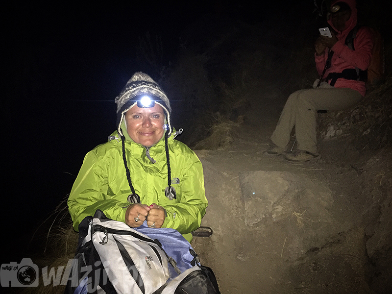 Wyruszyliśmy w nocy, zaraz po tym, jak moi balijscy towarzysze pomodlili się w świątyni. Pierwszy odcinek był całkiem przyjemny – ścieżka pięła się łagodnie w górę przez las deszczowy, który miałam nadzieję podziwiać schodząc ze szczytu następnego dnia rano. Minęliśmy Pos 1, pierwsze miejsce na dłuższy przystanek. Potem było już trudniej, bardziej stromo, a pokonywanie kolejnych metrów w górę nie raz wymagało podtrzymywania się, a nawet podciągania przy pomocy lian i prowizorycznych lin. Nogi zakopywały się w suchym piachu, bo od długich miesięcy nie padało. Żałowałam, że nie wzięłam rękawic, które choć trochę ochroniłyby ręce podczas lianowych wspinaczek; cieszyłam się, że założyłam porządne buty i że posłuchałam rady i wzięłam ze sobą kijki trekkingowe. Kilka lian, korzeni wielkich drzew i długich godzin później dotarliśmy do punktu, w którym nie dość, że nieodzowna okazała się gorąca herbata, to jeszcze w tempie niemal natychmiastowym założyliśmy wszystkie ciepłe ubrania, które ze sobą zabraliśmy. Było zimno, choć wtedy jeszcze nie wiedziałam, że temperatury nie powiedziały jeszcze tej nocy (i tego ranka) ostatniego słowa. Przed bezpośrednim wejściem na szczyt przysiedliśmy jeszcze w Pos 3, chroniąc się przed zimnym wiatrem (wszyscy) i modląc w niewielkiej kapliczce (Balijczycy). Potem pozostało jedynie wejść na górę.